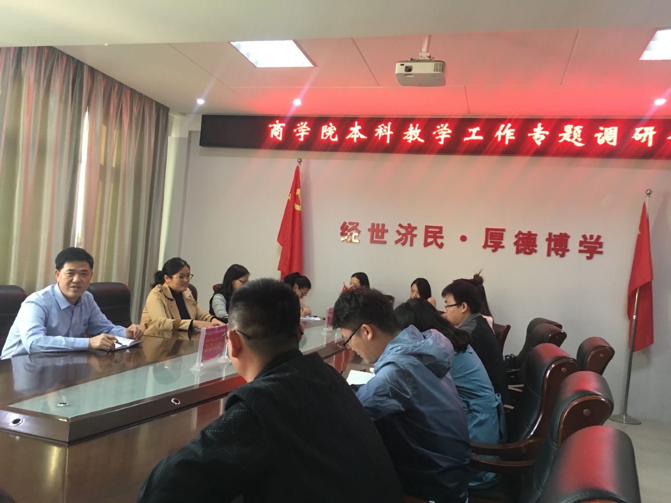 按照91社区 分党委关于开展“不忘初心、牢记使命”主题教育的实施方案,本着紧紧围绕中央和省委关于高等教育的决策部署,聚焦校党委全力推进的重点工作以及加强内涵建设的相关要求的中心思想,10月23日下午4点,91社区 副院长梅士建主持召开本科教学工作座谈会, 91社区 7个专业的35岁以下青年教师参加了本次座谈会。