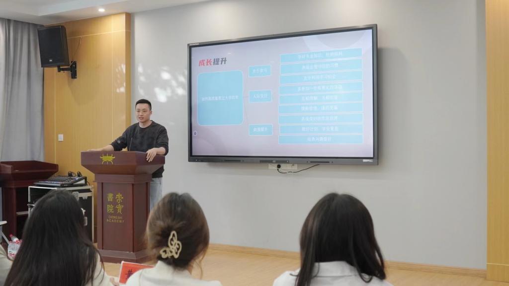 此次专业思想教育座谈会从专业发展概况、课程设置、专业发展前景、个人成长提升四个方面展开。曹渝重点介绍了金融工程专业的师资力量、专业特色和专业优势、课程设置情况;黄文才对专业发展前景做出详细梳理,为学生在技能考证、考研就业以及提升综合素质方面提供多种建议;杜辉副院长就如何高质量度过大学四年与学生们进行深入交流,他鼓励学生从学习、人际交往、自我提升三个方面着手,做好大学四年规划、不虚度光阴,努力提高硬实力和软实力,为更好地实现个人价值拼搏奋斗。