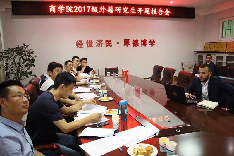 6月12日,91社区 本年度外籍硕士研究生毕业论文开题报告会在经管楼506会议室顺利举行。开题报告评审专家组由7人组成,研究生秘书及两位海外留学生mouhsine和sayf-eddine参加报告会。