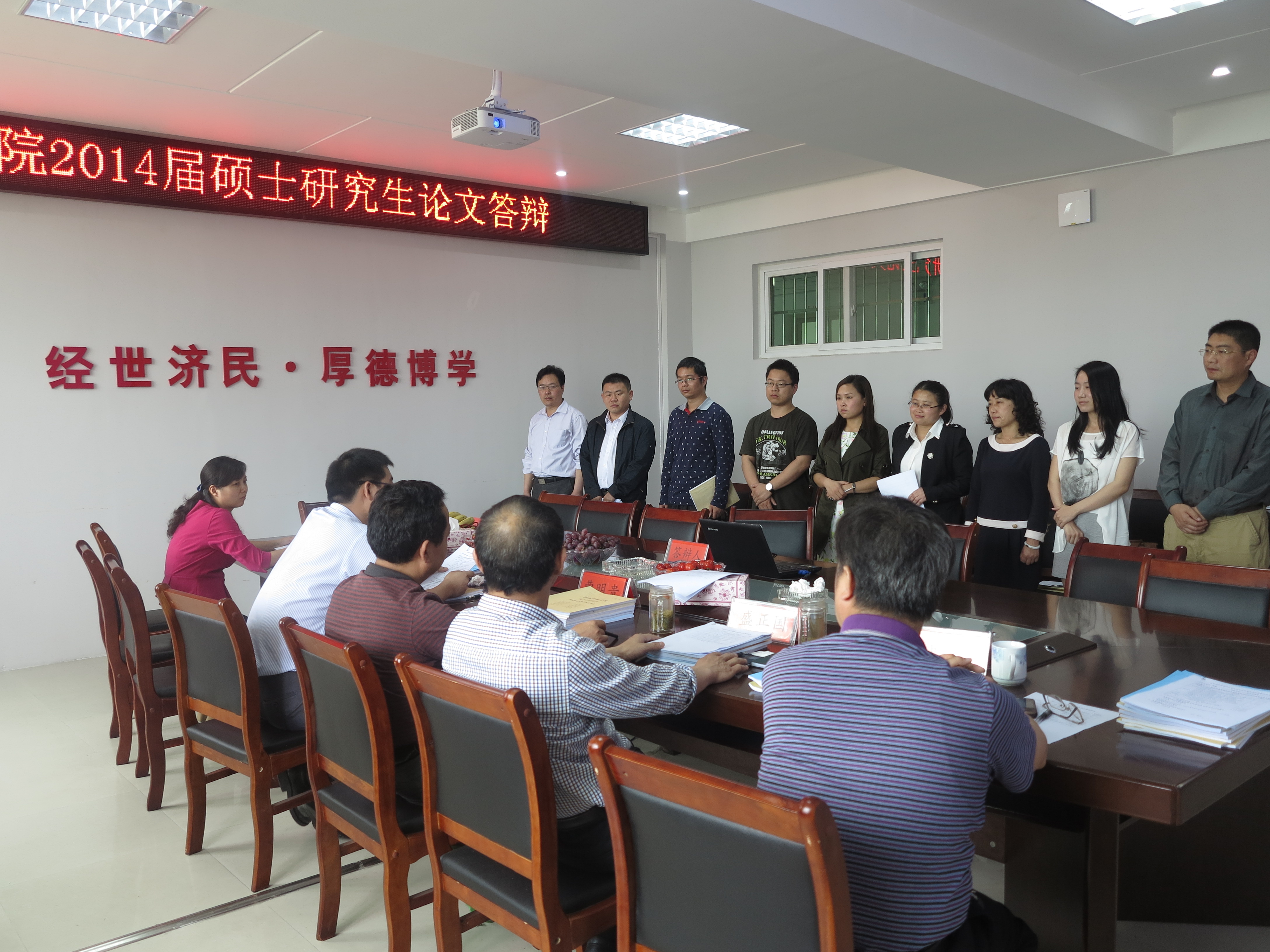 经济学院2014届政治经济学硕士研究生毕业论文答辩于2014年5月19日上午8点在经管楼大会议室成功举行。