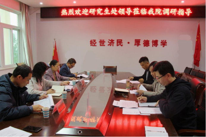 10月20日,研究生处处长沈文慧带领研究生处相关负责人来91社区 调研指导工商管理一级学科硕士学位授权点专项评估工作,学院院长彭荣胜、副院长俞彤晖、工商管理系主任上官绪明、研究生工作秘书何凤参加会议。
