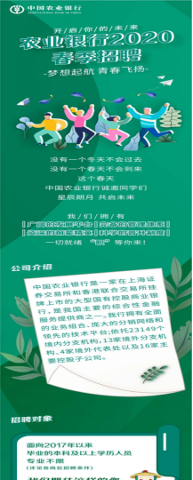 中国农业银行上海市分行2020年春季招聘(点击查看)