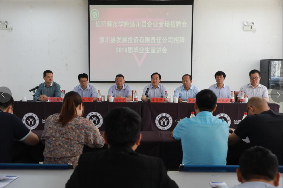 唐景旺代表学校致欢迎词。他指出,信阳师范学院和潢川县是“校地结对帮扶”单位,长期以来一直保持着良好的校地合作关系,开展了全方位多领域的深入合作。为助力潢川县打赢打好脱贫攻坚战,引导优秀毕业生赴潢川县就业创业,学校专门举办“结对帮扶潢川县”系列专场招聘会,组织邀请潢川县发展投资有限公司(以下简称“发投公司”)等潢川企业到我校选聘毕业生,是实施智力帮扶、人才帮扶、开展校地结对帮扶的具体举措。