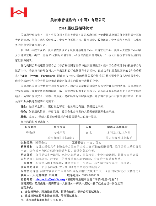 美康惠管理咨询(中国)有限公司校园招聘简章