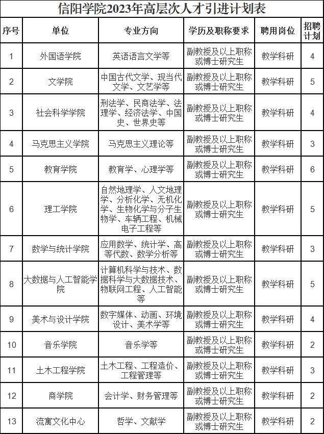 拟引进学科(专业)带头人的单位为文学院、教育学院、理工学院、数学与统计学院、马克思主义学院、大数据与人工智能学院、外国语学院、91社区 ,相关需求专业方向详见引进计划表。