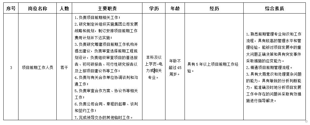 根据集团公司“2035一流战略”,结合河南公司工作及项目前期业务需要,面向集团公司系统内外公开招聘人才,热烈欢迎各类人才加盟。