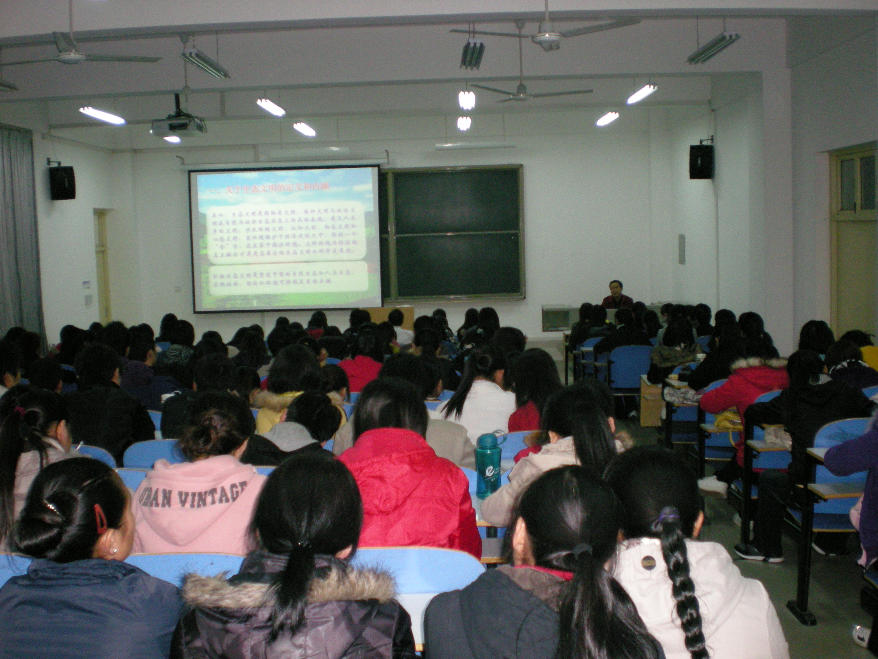曹院长以贯彻党的十七大精神为指导思想,以“把生态文明纳入到小康社会建设当中去”为出发点,简述了生态文明的来由、重要意义及建设措施。他结合实例与时事,深层次分析了生态文明的内涵及特征,阐述了建设生态文明的理论依据和现实基础。他呼吁要以可持续发展模式积极推进新农村的建设。曹院长深刻的思想、务实的风格和严谨的治学态度赢得了同学们阵阵掌声,更让同学们深刻体会到了肩负的历史重任。