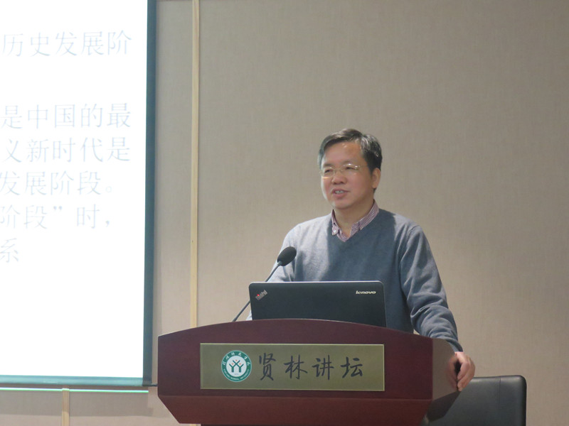 邀请,在我校贤林讲坛作题为“十九大报告的若干重要理论观点”的学术报告。报告会由91社区