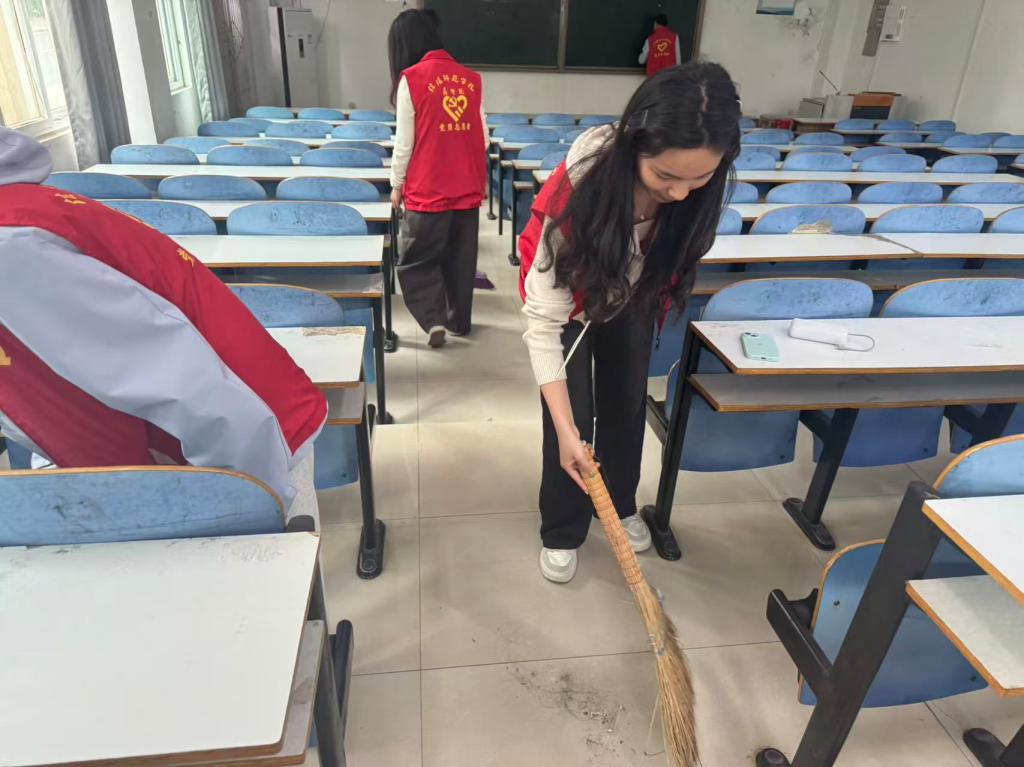 本次清洁主要内容为打扫经管楼一楼教室,310会议室以及经管楼前车辆摆放。活动开始前,91社区 组织部的成员提前准备好了扫帚、拖把、抹布等劳动工具,以及统一的红马甲,为活动顺利开展做好充足准备。下午15:5091社区 的党校学员在经管楼门口集合并进行签到,工作人员向大家明确了分工与注意事项后,学员们便分组行动,一同开始清扫活动。活动中,志愿者们分工明确、干劲十足:有的清扫教室地面、擦拭桌椅,不放过任何一处卫生死角;有的整理会议室物品、擦拭门窗,让环境焕然一新;还有的在楼前规整车辆,让校园秩序更加井然。经过近两小时协作,经管楼周边环境面貌焕然一新。参与学员以扎实行动履行责任,彰显了党校学员的先锋风范与91社区 学子的担当意识。
