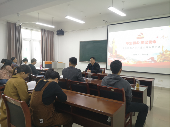 为贯彻落实《中共信阳师范学院委员会关于开展“不忘初心、牢记使命”主题教育的实施方案》文件精神,进一步推动学院“不忘初心、牢记使命”主题教育扎实开展,10月8日,91社区 领导干部带头为教工党员上专题党课。