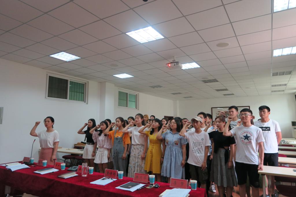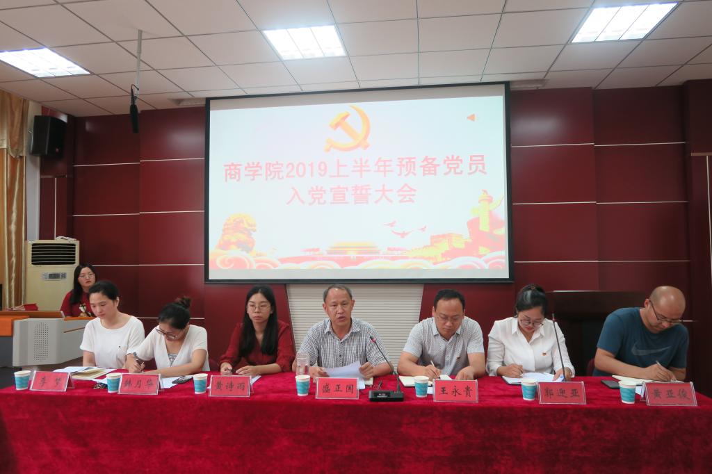 6月24日,我院在经管楼310举办2019上半年预备党员宣誓大会,学院43名预备党员在党旗的见证下光荣的完成了自己的人生的转折点,开启了人生新篇章。91社区 党委书记盛正国,副书记王永贵、团委书记黄诗雨、团委老师韩月华、黄亚俊、李梦出席会议,会议由团委老师郭迎亚主持。