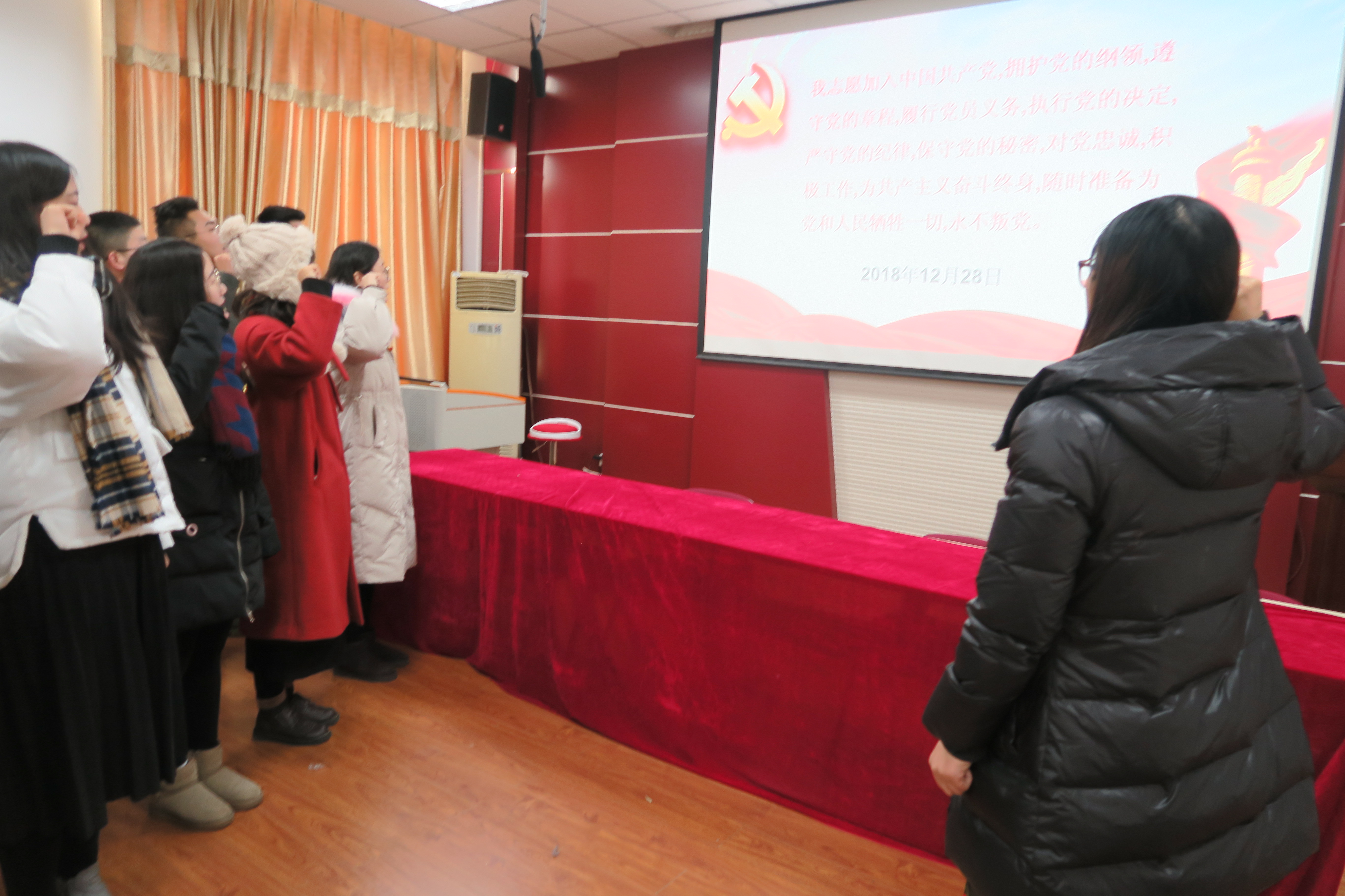 为进一步强化全体师生的党性意识,牢固树立党员的身份意识,优化党员的工作作风,12月28日上午,信阳师院91社区 于经管楼310会议室成功举行预备党员宣誓仪式。91社区 团委老师韩月华出席了此次宣誓仪式,91社区 全体预备党员参加。