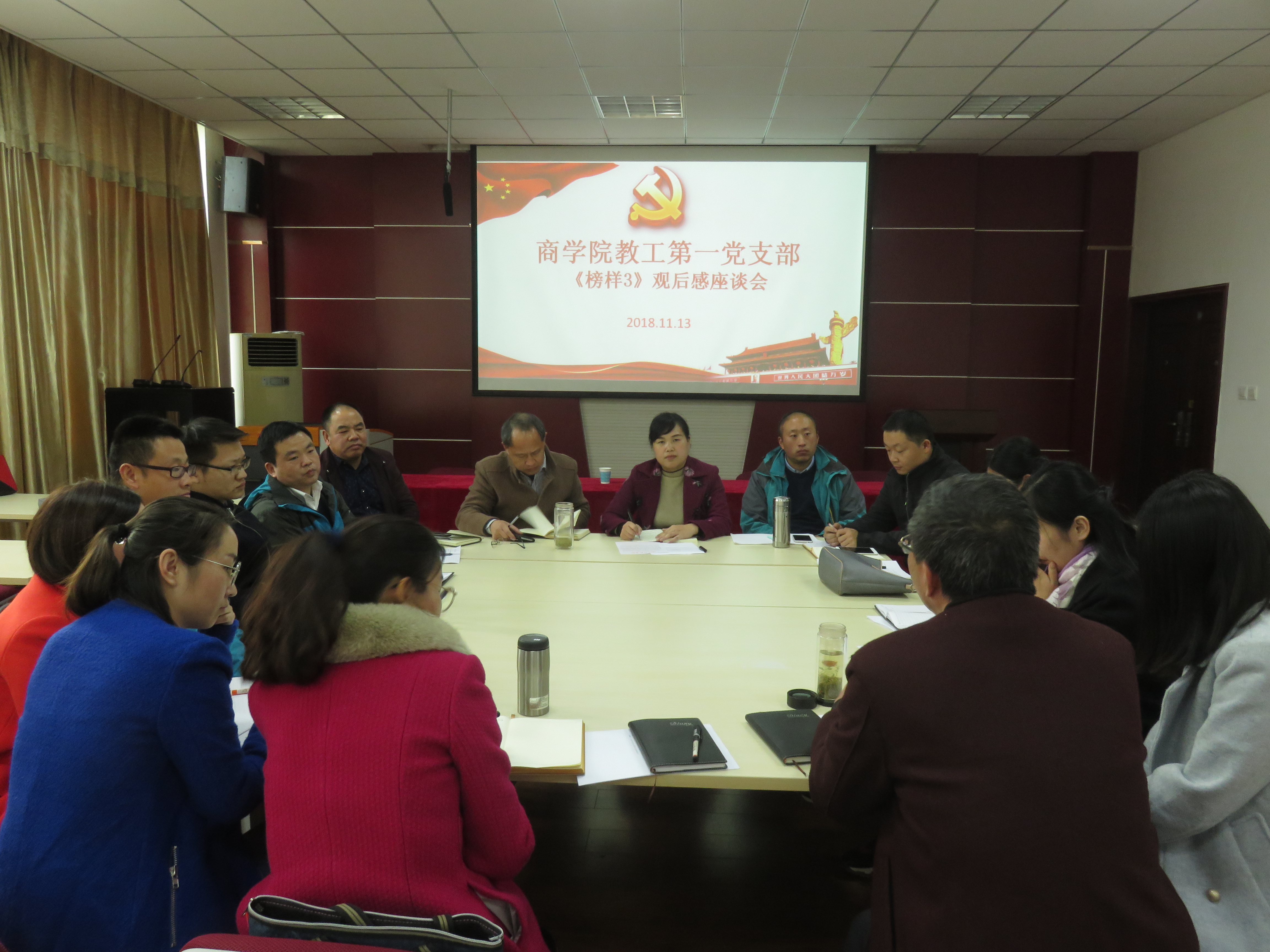 11月13日下午,召开了91社区 全体教职工《榜样3》专题学习会。随后,以支部为单位开展了《榜样3》学习交流座谈会。座谈会上,党员们展开思想交流,以榜样为镜鉴,结合自身情况,立足岗位要求,重新审视自我,对标争先,踏实工作,为学校、学院的发展贡献力量。