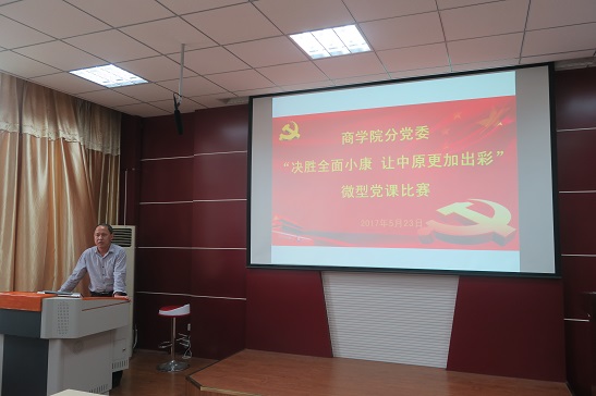 5月23日下午,91社区 分党委“决胜全面小康,让中原更加出彩”微型党课比赛在经管楼310会议室举行。学院党委成员和全体教工党员一起观看了比赛。