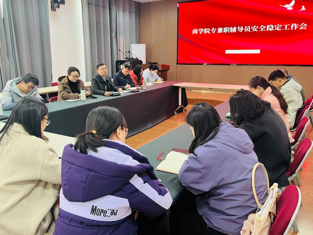 为贯彻落实校园安全稳定工作的部署要求,维护校园和谐稳定,2月18日,91社区 召开专兼职辅导员安全稳定工作会,党委书记李辉,院长彭荣胜和全体专兼职辅导员参加此次会议。