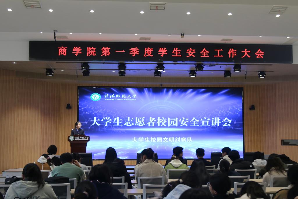 会上,尚心怡通过详实的数据分析和典型案例,深入剖析了火灾、电信诈骗、交通事故等校园常见安全隐患的成因及预防措施,系统性地阐述了各类安全事件的应急处置方案,有效提升了与会师生的安全防范意识和应急处理能力。她呼吁大家要牢固树立"安全第一"的理念,严格遵守校园安全管理规定,自觉养成文明出行的良好习惯,共同营造安全、有序的校园环境,为青春成长保驾护航。盛海在总结中,深入浅出地阐述了校园安全工作的重要性,并对全体学生提出了严肃要求:要时刻保持警惕,增强风险防范意识,提升应急处置能力,确保在校期间的安全与健康。