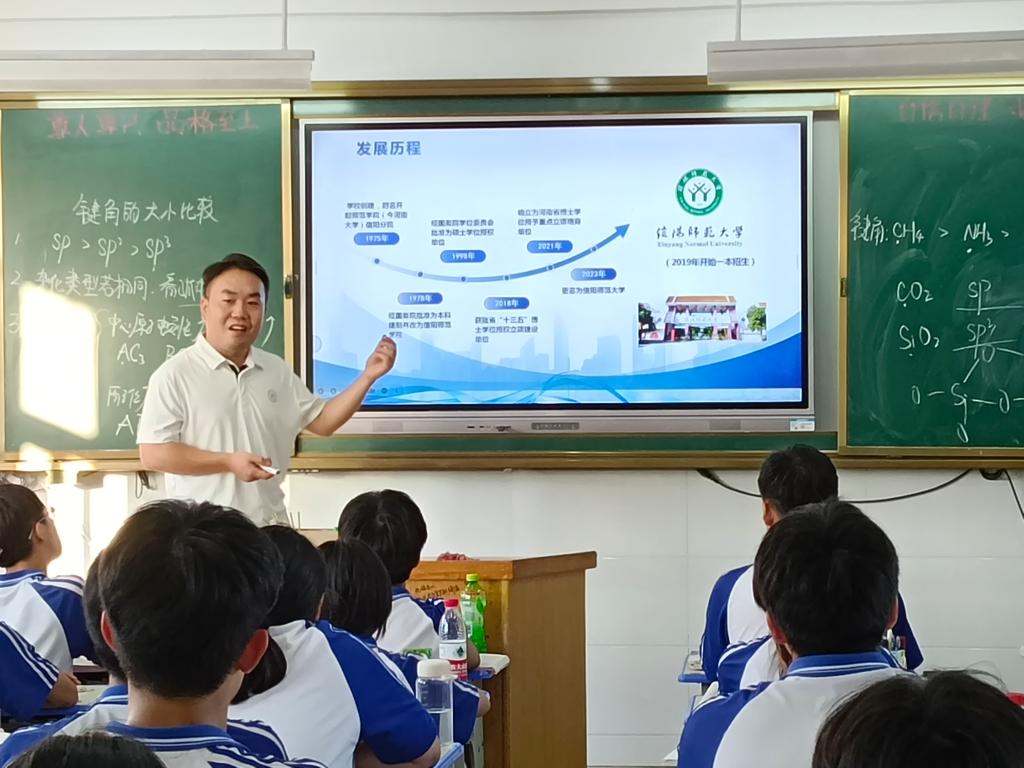 在商丘二高校园咨询现场,团队通过招生手册、案例资料,围绕录取规则、专业优势、就业路径等核心问题,为学生及家长 “一对一” 答疑。盛海老师结合学院产教融合特色,解析商科 “理论 + 实践” 培养体系,助力考生规划升学方向。走进信阳宋基高中课堂,盛海老师以学院发展历程为脉络,从办学积淀到一本招生突破,从商科专业亮点到 “双创 + 就业” 培育模式,全景展现学院优势。互动环节中,师生围绕 “专业选择、校园发展” 踊跃提问,现场氛围热烈。