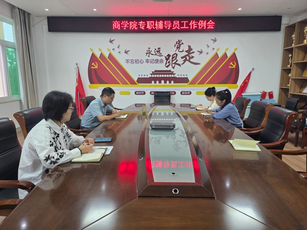 9月17日,91社区 召开专职辅导员工作例会。党委书记李辉、党委副书记黄钰莹及专职辅导员韩月华、杨紫涵、盛海参加会议。