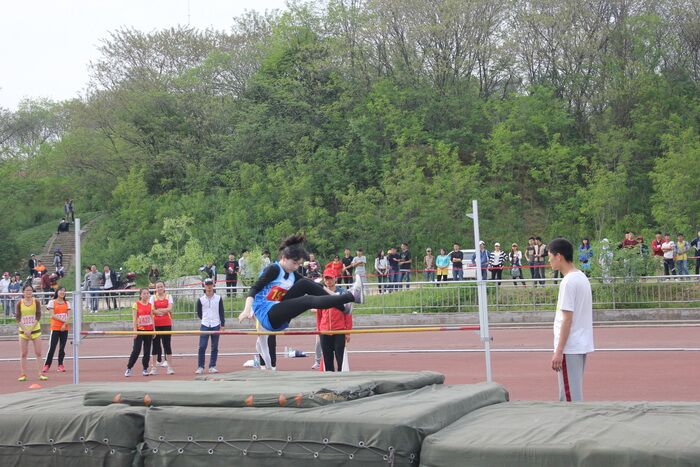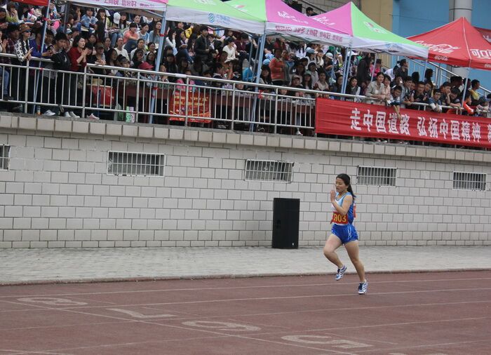 张润利同学参赛时的飒爽英姿(取得女子甲组400米预赛进决赛第一名)