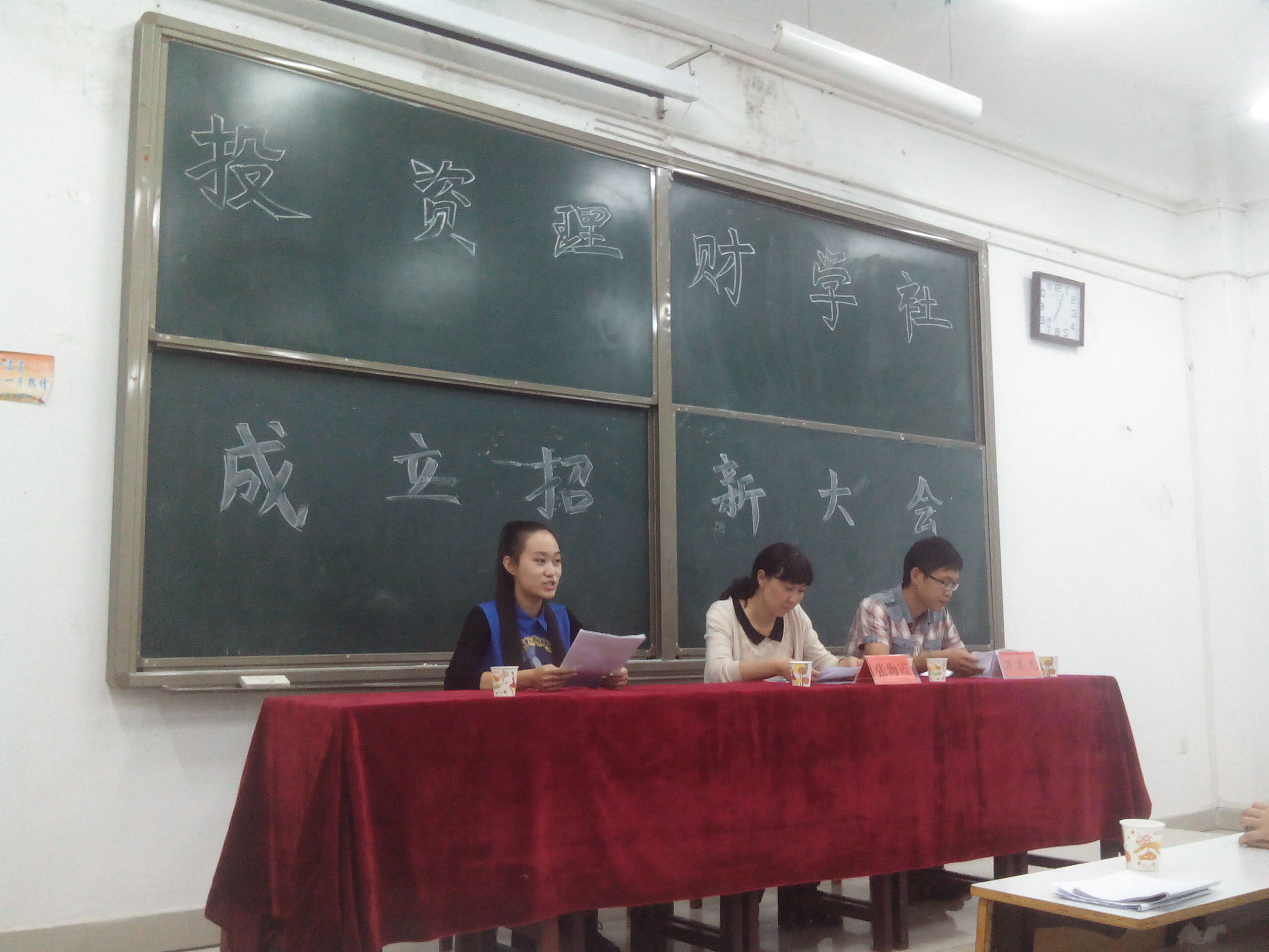 在一阵热烈的掌声中,投资理财社团成立大会正式开始。首先由社团指导老师万其龙讲话。万老师就该社团的专业性以及发展趋势向大家进行了详细介绍,帮助社团成员们更加明白自己的任务与目标。接下来由张海霞老师作重要讲话,她向大家介绍了一下社团的大概情况,同时对新社团的成立表示热烈祝贺,并希望社团成员们能永远保持活力欣欣向荣,紧接着公布理事会成员名单。随后,社团社长宣读社团章程、对社团成员提出工作要求。期间,由新生代表陆续发言,他们纷纷表示自己一定以身作则,做好社团工作.最后由副社长袁梦宣布社团首届职能部门负责人名单,大会圆满结束。