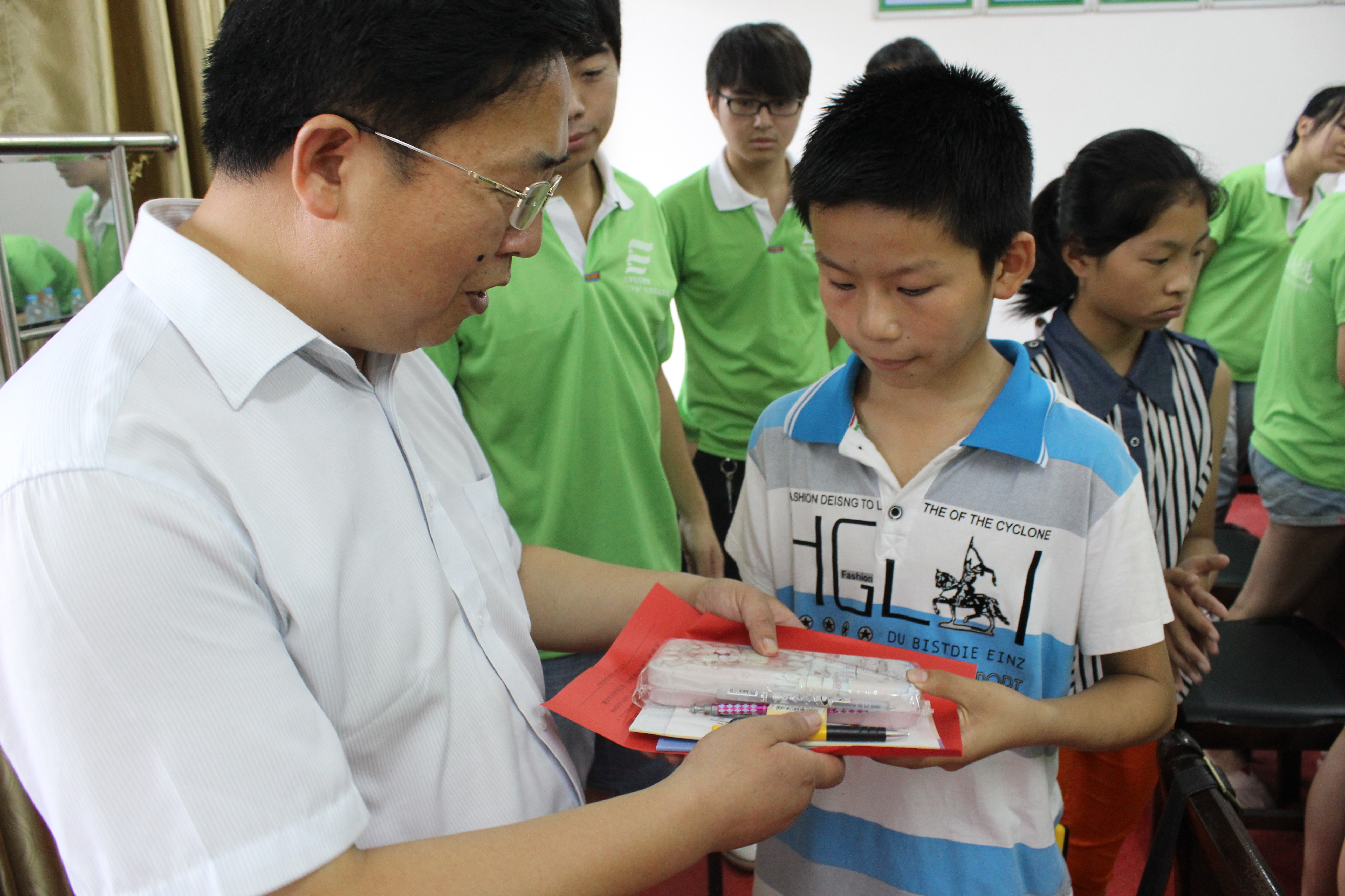 1号上午同学们冒着绵绵细雨参观了潘新中心学校,在会议室中首先陈老师表示这次社会实践活动是贯彻建功“四个河南”精神的一次亲近群众的活动,对郭校长的大力支持表示感谢。随后郭校长也对同学们的到来表示热烈欢迎,他就学校目前的师资力量作了简要介绍,并对在场同学们寄予希望,希望大家来这支教,共同为学生的学习成长提供帮助。接下来同学们将已准备好的文具分发给了学校中留守儿童,并勉励他们好好学习,立志成为祖国的栋梁之才。孩子们对收到文具表示感谢,也表示要立志学习,不辜负在外家长、老师和哥哥姐姐们的期望。