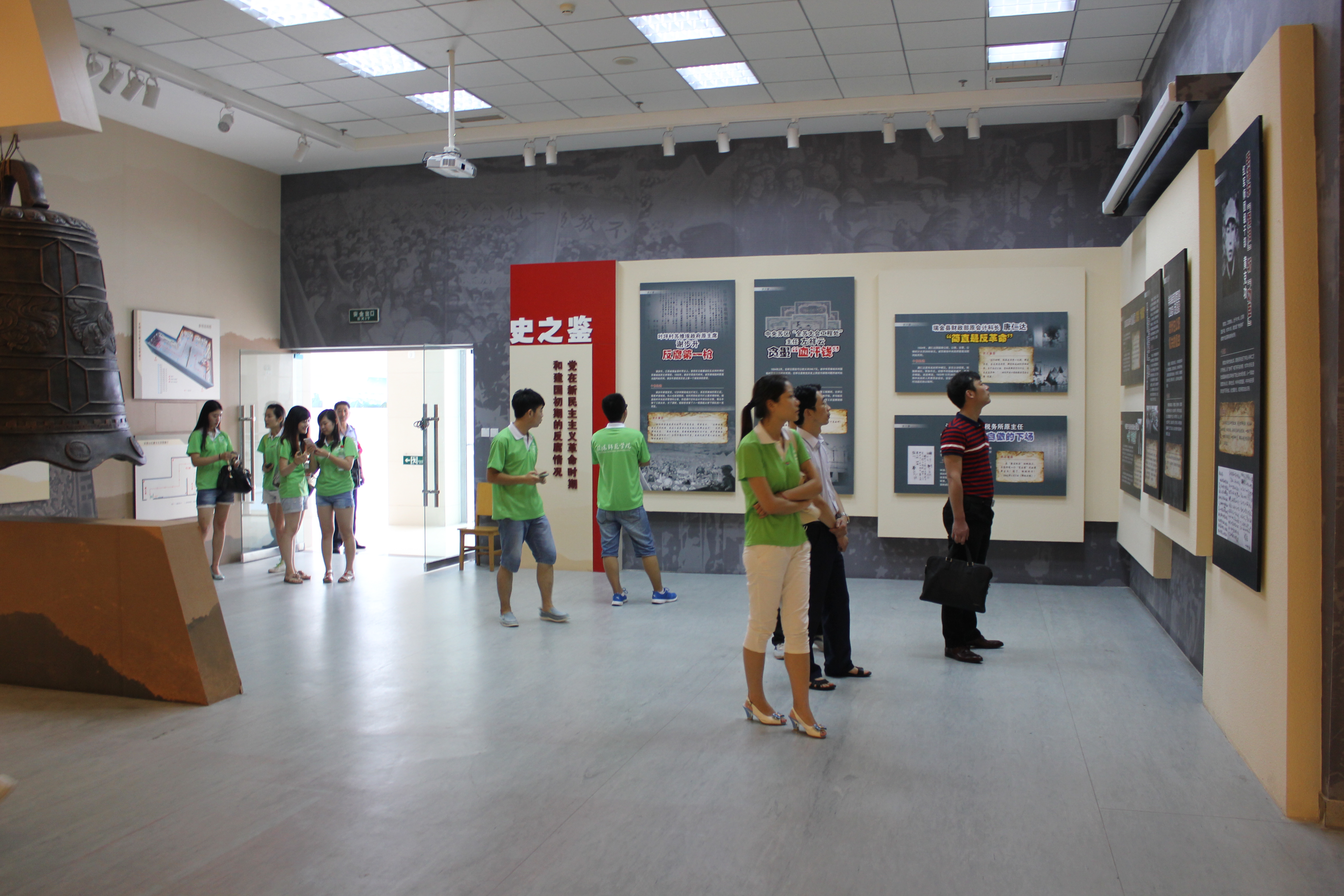 接着朱馆长带领大家来到警廉厅,警廉厅是展现信阳市廉政文化历史传承和党在新时期的廉政文化建设成就的重要平台。步入展厅一件件触目惊心的真实案例展现在大家眼前,大家认真阅读每一件案例,并不时相互交流意见。陈颢文老师在观看时强调要坚定不移地落实党的群众路线教育实践活动,要把为群众服务放在首位,要时时刻刻在心中敲响警钟,他指出在场的各位同学以后不管从事什么工作都要严于律己,关心人民群众,要保持作风朴素,保持信念坚定。最后他语重心长地告诫在场同学要以这些触目惊心的案例为警钟,从现在就坚定为人民服务的信念,做一个单纯纯粹的人。