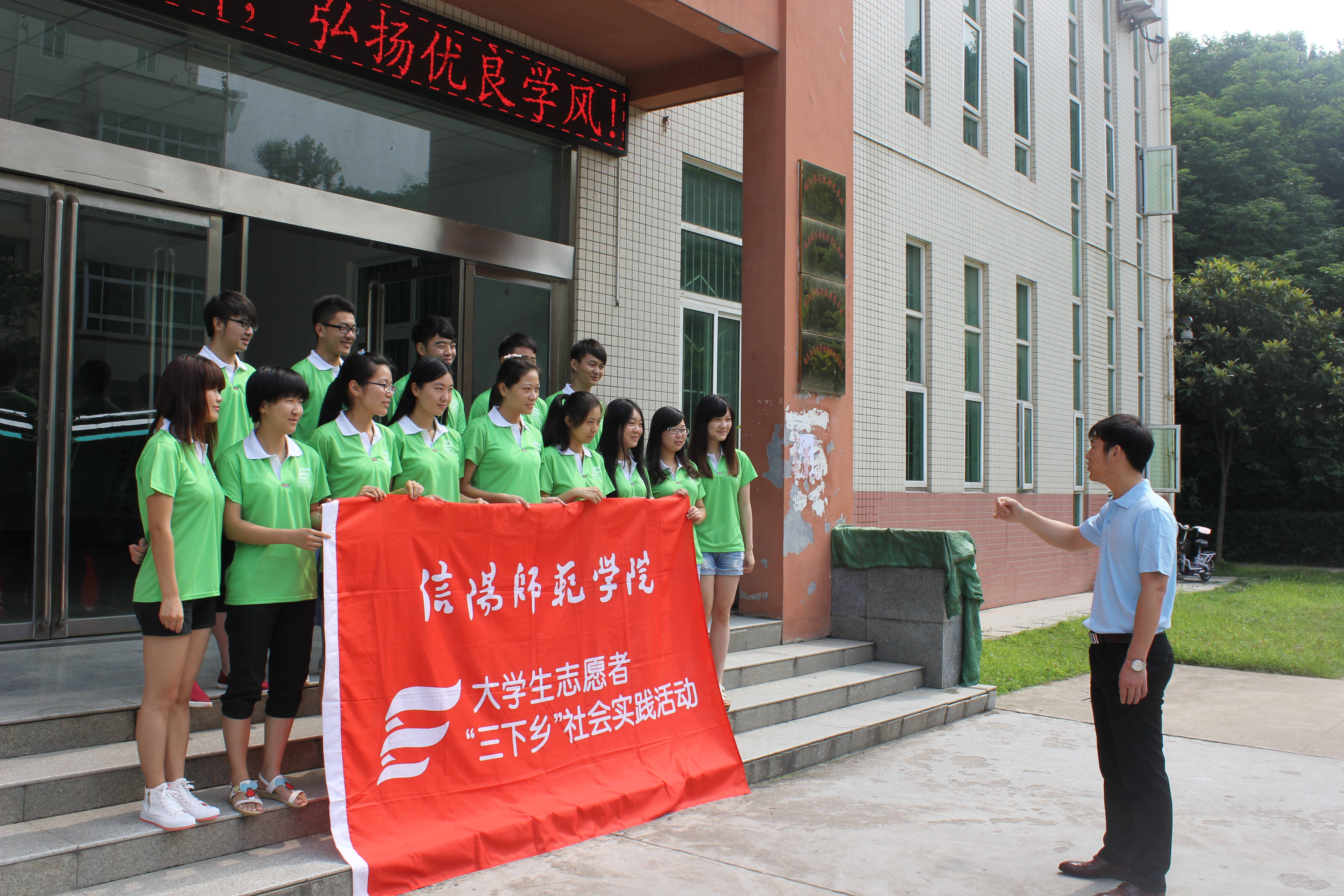 派出一支由农业经济学者杜辉博士为指导老师、陈颢文为带队老师的18人暑期志愿服务小分队,从28号开始历时一周,奔赴信阳市周边、罗山彭新镇,铁铺乡等地广泛调研,为当地送去经济知识、主流文化、学习文具和农村经济社会发展的意见建议。