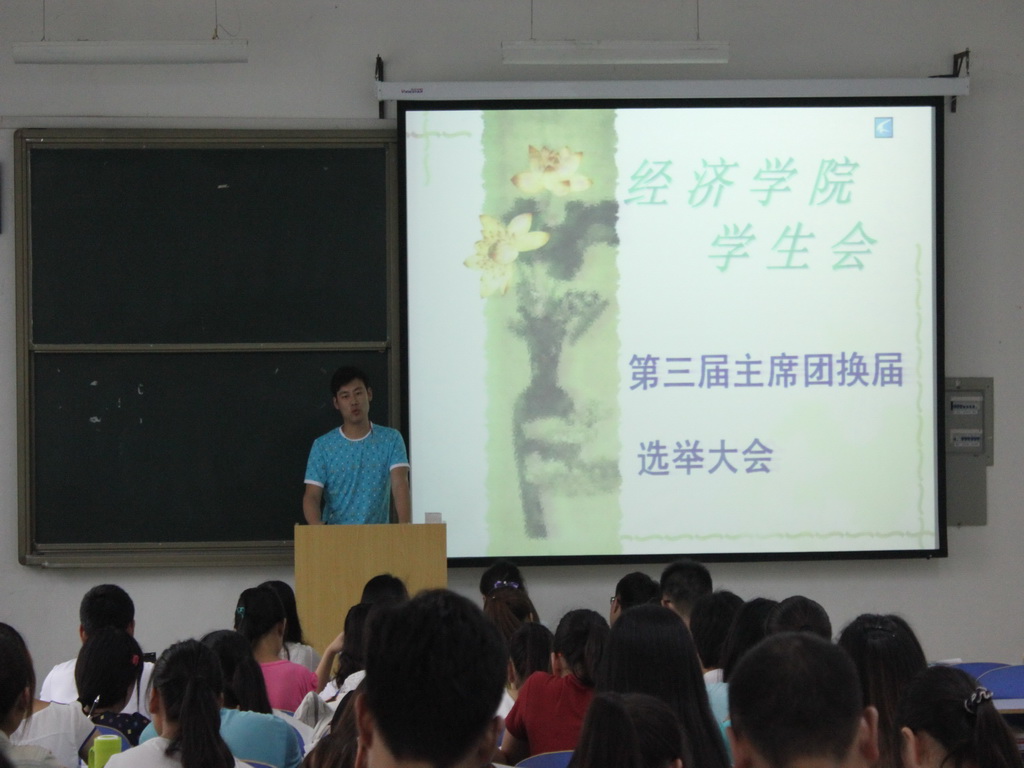 学生会新一届主席团换届选举大会在经管楼101隆重召开,91社区
