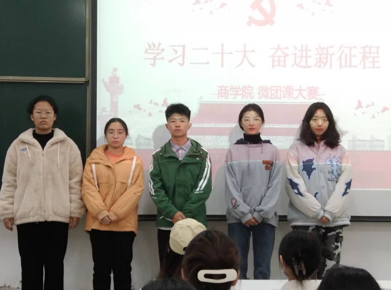 活动开始,主持人宣读了比赛规则及评分要求。随后,九位参赛选手围绕百年党史、二十大、扶贫攻坚、科技创新等主题,灵活运用PPT、视频等形式,为评委和观众带来了一场精彩绝伦的“微团课”。以史为鉴,可以知兴替。三号选手仝晓明结合PPT带领大家回顾了党的百年征程,感悟中国共产党为国为民无私奉献、笃行不怠的高尚情怀;四号选手张一帆通过播放开国大典的视频,让观众重温那个于民、于党、于国都万分重要的历史时刻,激发了同学们的民族自信心和归属感;七号选手沈初蕊设计的二十大问答环节,不仅加深了在场人员对二十大相关知识的掌握和理解,更将现场气氛推至高潮……选手们蓬勃向上的朝气、学而思辨的才气、青春向党的正气给在场人员留下了深刻的印象。经过近两个小时的演说,沈初蕊荣获一等奖,张一帆、李硕星荣获二等奖,郭雪贝、张欣慧、薛淑丹荣获三等奖。在热烈的掌声中,本次微团课大赛圆满结束。