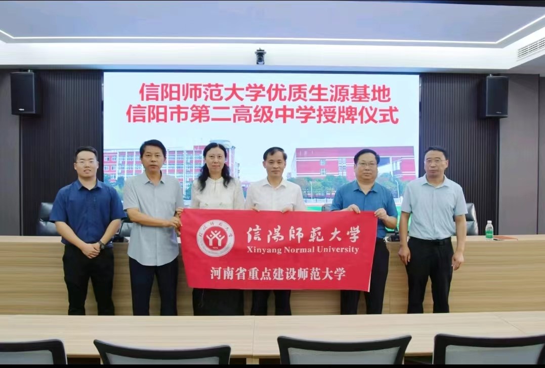 为加强与信阳市第二高级中学的合作关系,共同推动人才培养和选拔,6月27日,91社区 院长彭荣胜、党委副书记张海霞、副院长梁静波、团委书记袁巍峰等赴信阳市第二高级中学开展优质生源基地签约授牌仪式,信阳市第二高级中学副校长卫传申、政教主任张登峰、办公室副主任陈明生、禹迎秋等出席本次仪式。