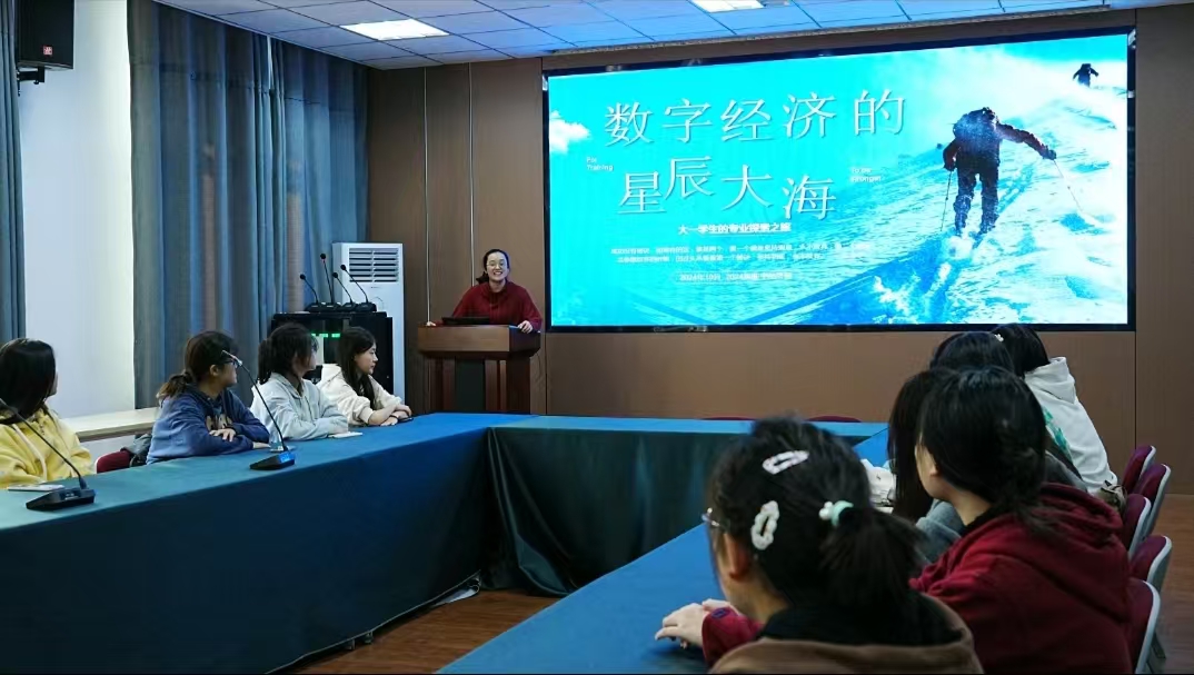 10月29日,91社区 2024级数字经济班在经管楼310会议室开展以“数字经济的星辰大海”为主题的班会。校学生处副处长杨乐、学院党委书记李辉、学院党委副书记黄钰莹莅临指导,24级数字经济班全体同学参加本次会议。