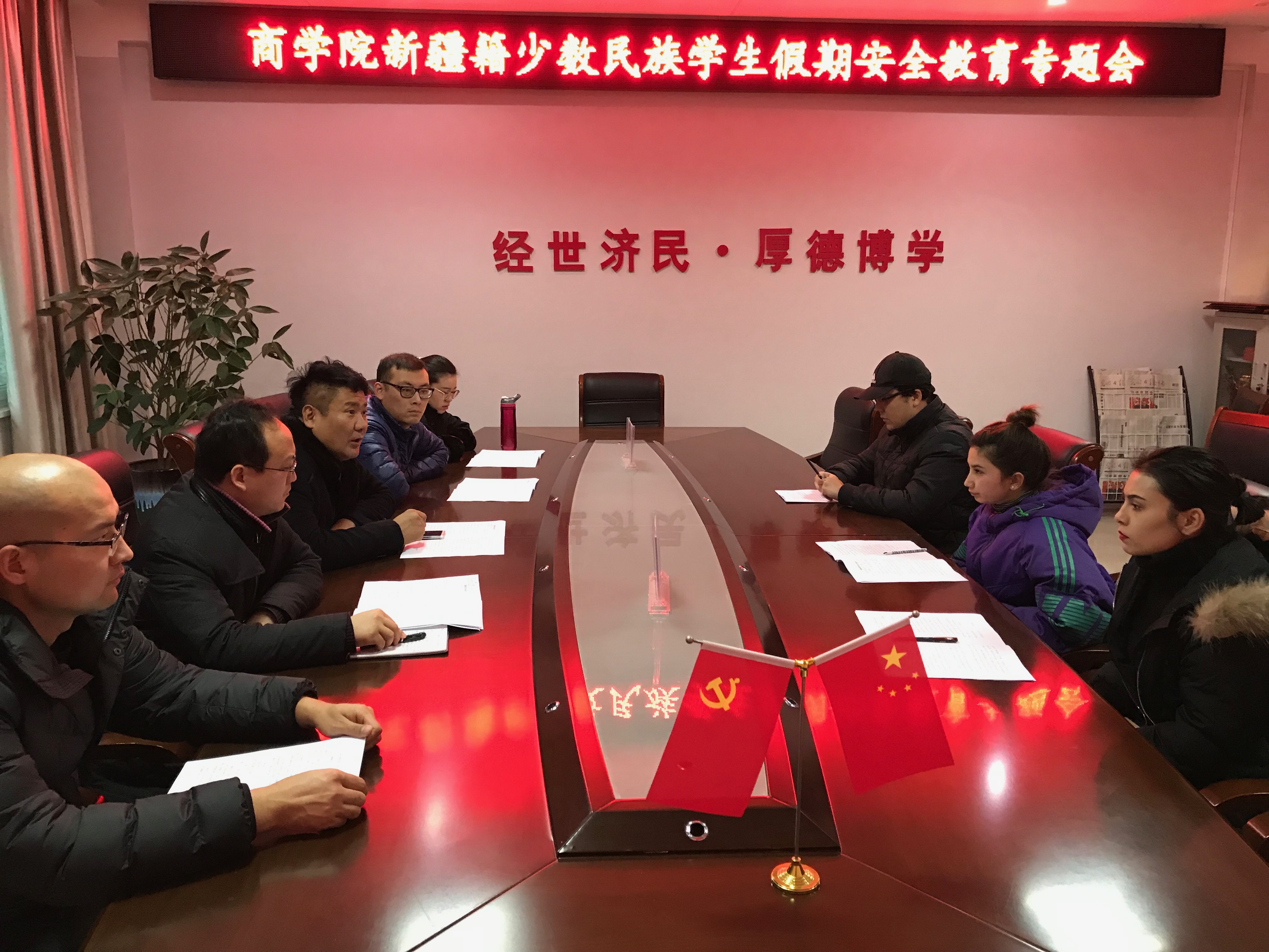 为了加强新疆籍少数民族学生教育管理,进一步增强学生法制观念,提高学生安全防范意识和能力,确保学生过一个安全祥和的寒假。学院于1月10日下午在506会议室召开新疆籍少数民族学生假期安全教育专题会议。新疆内派教师、学生处副处长苏和应邀出席了会议,91社区 党委副书记王永贵、专职辅导员、班主任及新疆籍少数民族学生共同参加了会议。