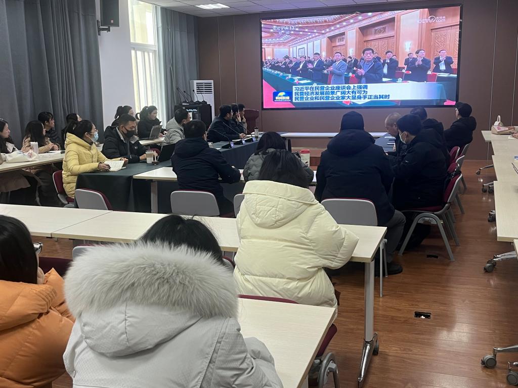 会上,大家集中学习观看了《习近平总书记参加民营企业座谈会》的相关视频资料,并认真学习了习近平总书记的重要讲话。