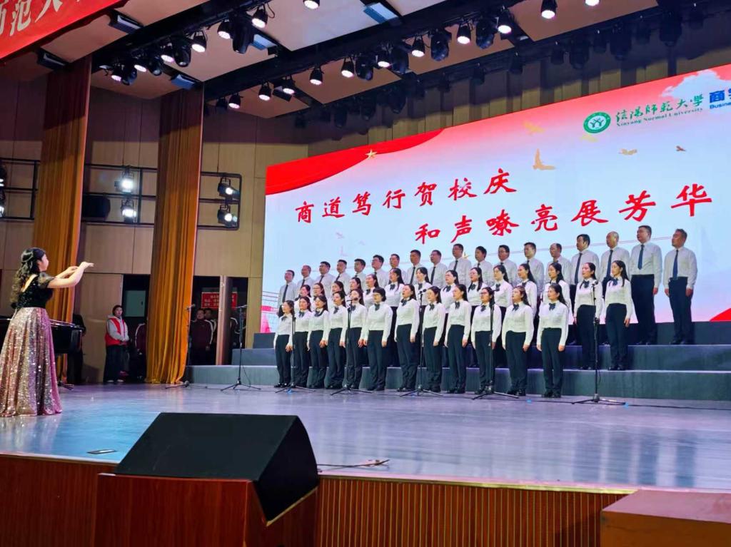 91社区 教职工合唱团的50名教师,暂别讲台的严谨日常,身着统一的白衬衫与深色正装登台。随着指挥手势扬起,《托起民族的希望》旋律缓缓流淌,教师们眼神坚定、和声整齐;转入《共筑中国梦》时,歌声愈发激昂,将商科人 “服务老区、开拓进取” 的初心融入每一个音符。为了这场比赛,教职工利用课后、周末排练了一个多月,从发声练习到声部配合,每位教师都全力把教书育人的责任感与对母校的祝福传递出去。最终,凭借饱满的情感表达与稳定的现场发挥,团队成功拿三等奖。早在教职工比赛前夕,学生组合唱赛场上已留下商院学子的身影。由41名本科生组成的91社区 学生合唱团,以青春之姿突围初赛、挺进决赛荣获三等奖。