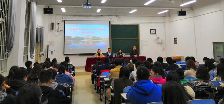 为积极贯彻学校2018年本科教学工作审核评估要求,充分展现91社区 优良学风和青年学子的良好精神风貌。10月15日晚7点,91社区 于经管楼103举行本科教学工作审核评估学生动员会。91社区 党委副书记王永贵出席了会议,团委老师黄诗雨、黄亚俊、韩月华,各班班长、团支书以及学生会、宣传中心主要学生干部、学生党员代表近200人参加了动员会。会议由黄亚俊主持。