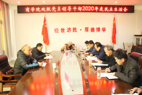 1月14日下午,91社区 在经管楼506会议室召开了2020年度处级党员领导干部民主生活会。校纪委书记龚立新、综合室主任周经兵到会指导,学院全体领导班子成员参加了会议。会议由商学院党委书记盛正国主持。