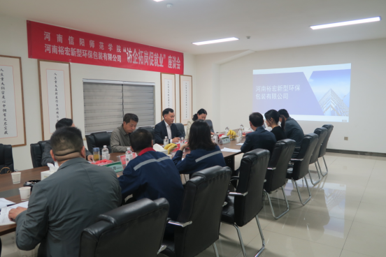 为持续开展访企拓岗专项行动,5月26日,91社区 院长彭荣胜、党委副书记张海霞、副院长梁静波一行赴河南裕宏新型环保包装有限公司走访调研。遂平县工信局副局长刘义、公司执行董事刘敏、总经理马智会等相关人员参加调研。