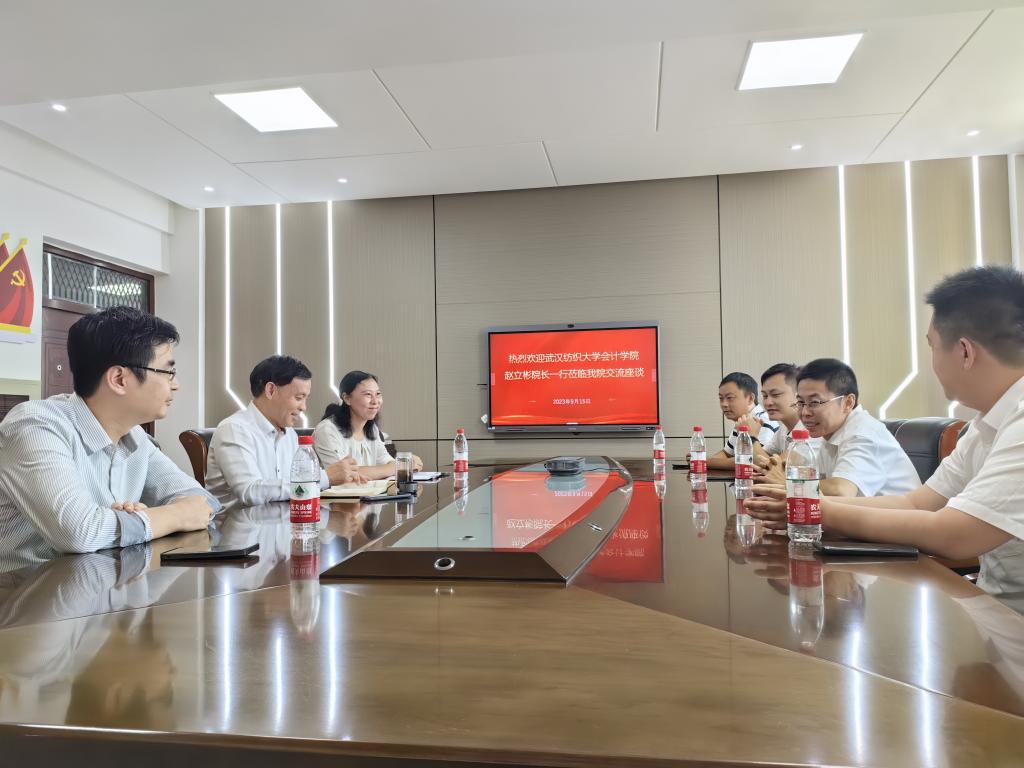 9月15日上午,武汉纺织大学会计学院院长赵立彬、研究生导师组组长任俊霖、学科竞赛中心主任张座铭、办公室主任林文等一行来91社区 考察交流,91社区 院长彭荣胜、副书记张海霞、副院长俞彤晖等陪同考察座谈。